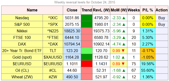 Weekly reversal levels with buy and sell signals for over 1500 stocks and ETF